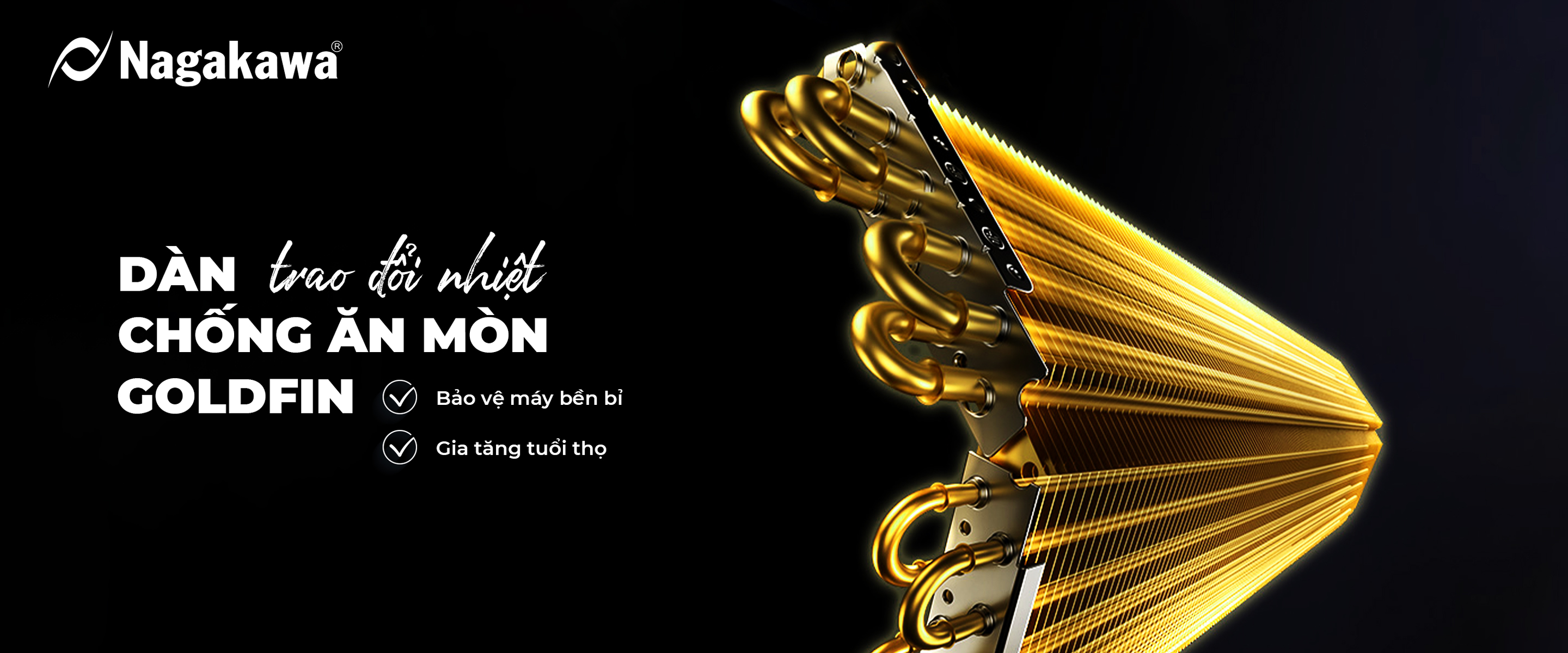Cục nóng và cục lạnh sở hữu dàn trao đổi nhiệt chống ăn mòn GoldFin có thể hoạt động dưới nhiệt độ cao ngoài trời. Đồng thời, hạn chế bám bẩn và chống ăn mòn bởi các tác nhân bên ngoài như không khí, nước, hơi mặn (khu vực vùng biển),… lên dàn nóng giúp máy hoạt động bền bỉ, gia tăng tuổi thọ.