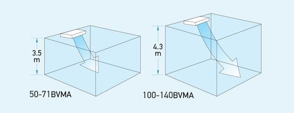 Luồng gió thổi mạnh mẽ thích hợp cả khi trần cao