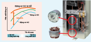 Dòng sản phẩm biến tần của Daikin được trang bị máy nén với DC từ trở. Động cơ này tiết kiệm năng lượng vì trong quá trình hoạt động nó cần ít điện năng nhưng vẫn sản sinh ra công suất lớn hơn động cơ AC và động cơ DC truyền thống.