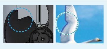 Việc sử dụng cánh quạt chân vịt có khía chữ V mô phỏng hiệu suất hoạt động của cánh loài thiên nga, điều này giúp cho lượng gió đều và không bị thất thoát.