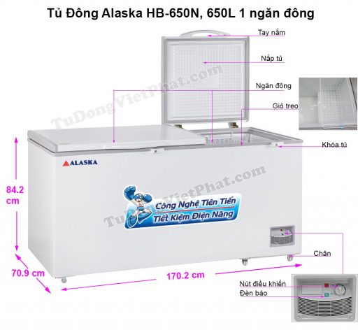 - Tủ Đông Alaska HB-650N là tủ đông cỡ trung dung tích 650 lít, thiết kế 1 ngăn đông, 2 nắp mở.